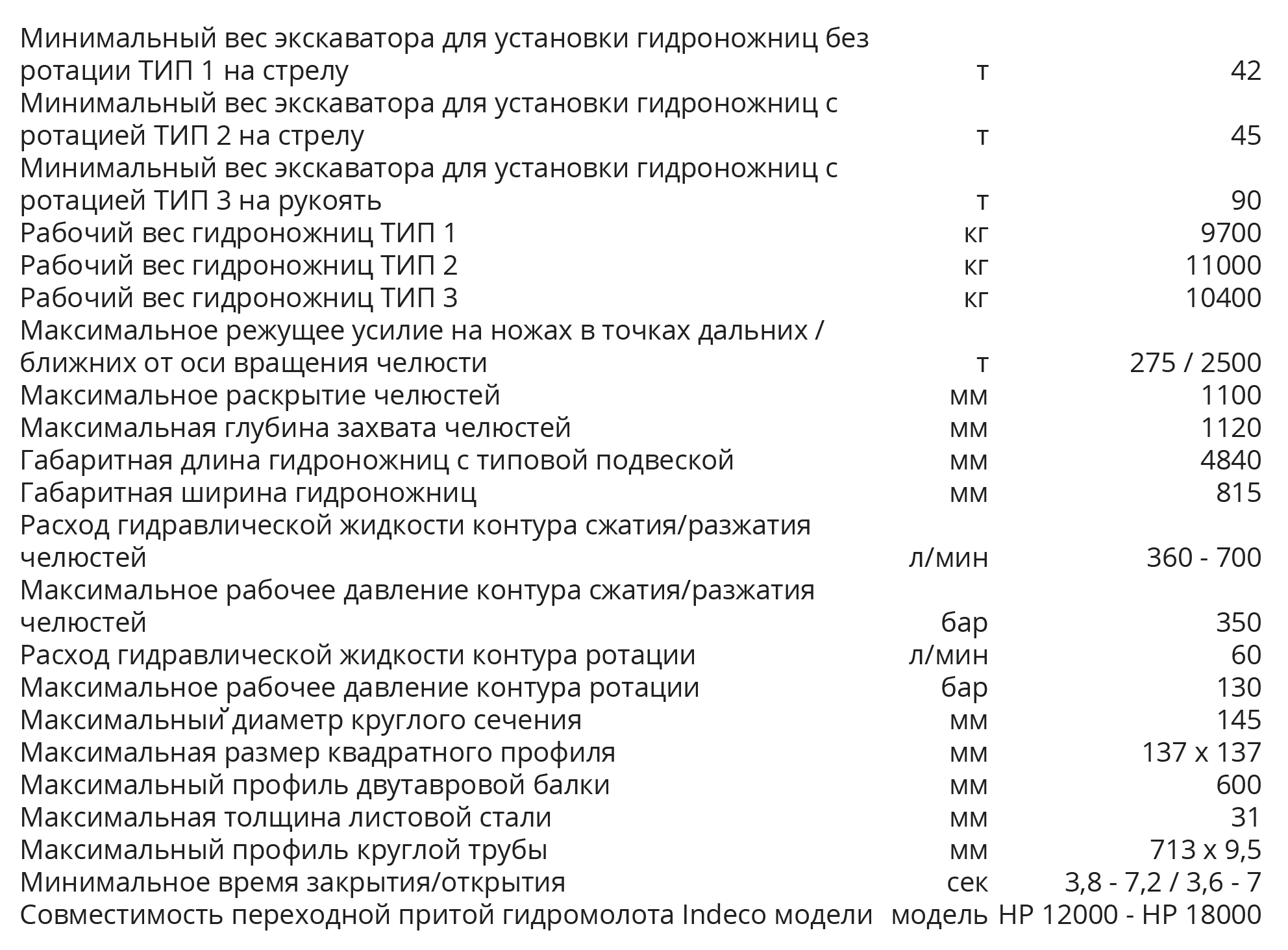 - Рабочий вес гидроножниц по металлу - 9,7-10,4 т
